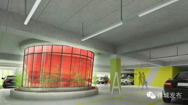 在室內空間上,采用名為七彩風光漏斗的節能趣味空間設計,這是一種被動式節能技術,通過節能軟件分析,在建筑內部設計了幾個從屋頂貫通建筑每一層的風、光漏斗,打破車庫室內的沉悶感。