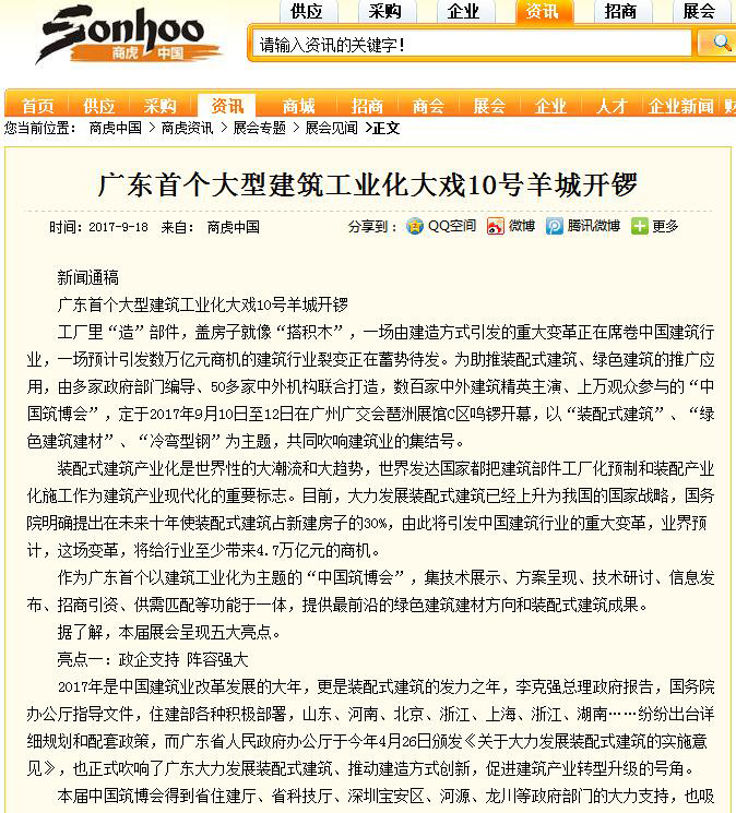 招商寶網(wǎng)發(fā)布有關(guān)2017中國(guó)筑博會(huì)·廣州開幕式的報(bào)道 (2017-10-30)