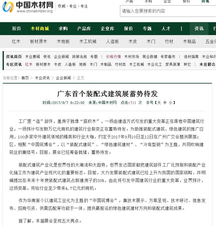 木材圈網(wǎng)發(fā)布有關(guān)2017中國(guó)筑博會(huì)·廣州開(kāi)幕式的報(bào)道 (2017-10-30)