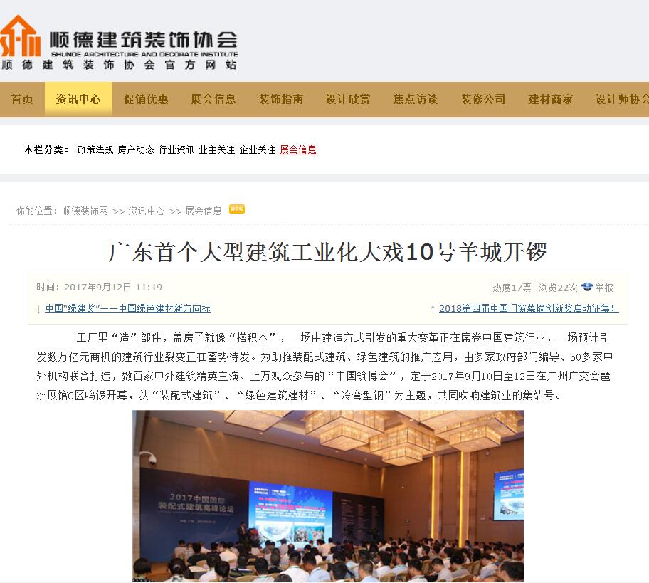 綠建之窗網發布有關2017中國筑博會·廣州開幕式的報道 (2017-10-30)