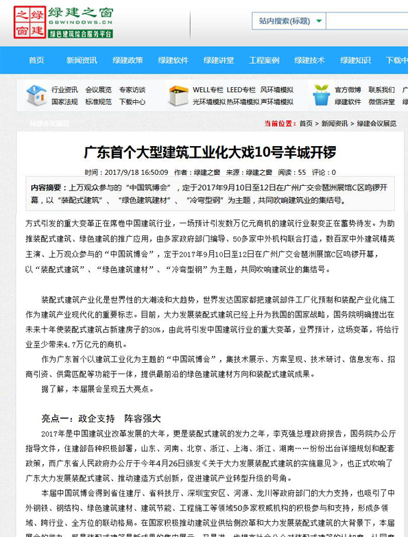 鋁博士網發布有關2017中國筑博會·廣州開幕式的報道 (2017-10-30)
