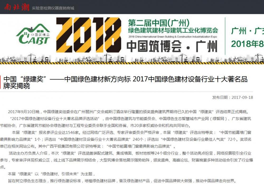 招商寶網發布有關2017中國綠色建材設備行業十大著名品牌獎的報道 (2017-10-30)