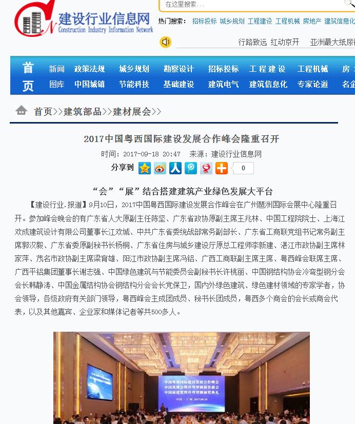 廣告買賣網發布有關2017中國綠色建材設備行業十大著名品牌獎的報道 (2017-10-30)