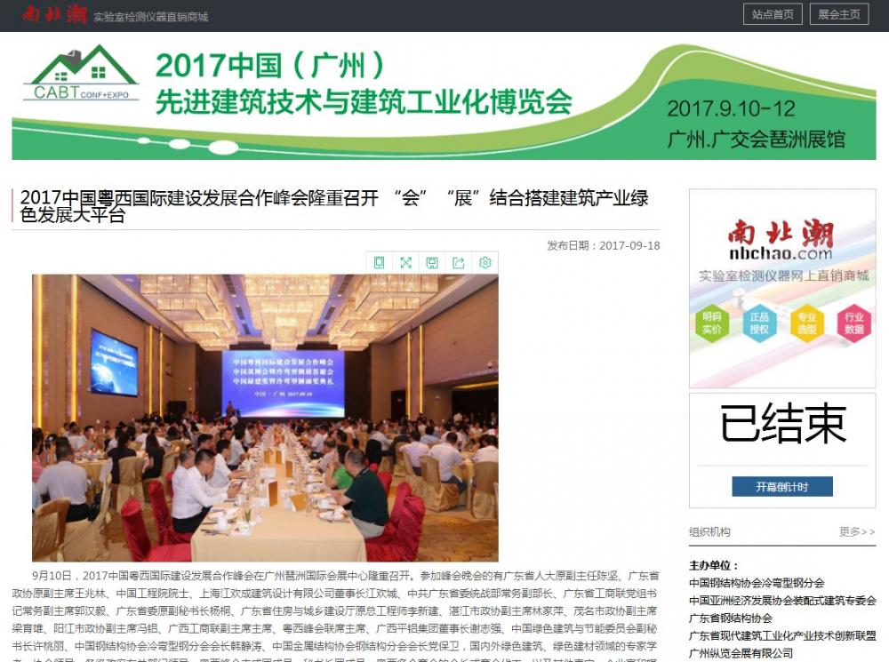 賢集網發布有關2017中國粵西國際建設發展合作峰會的報道 (2017-10-31)