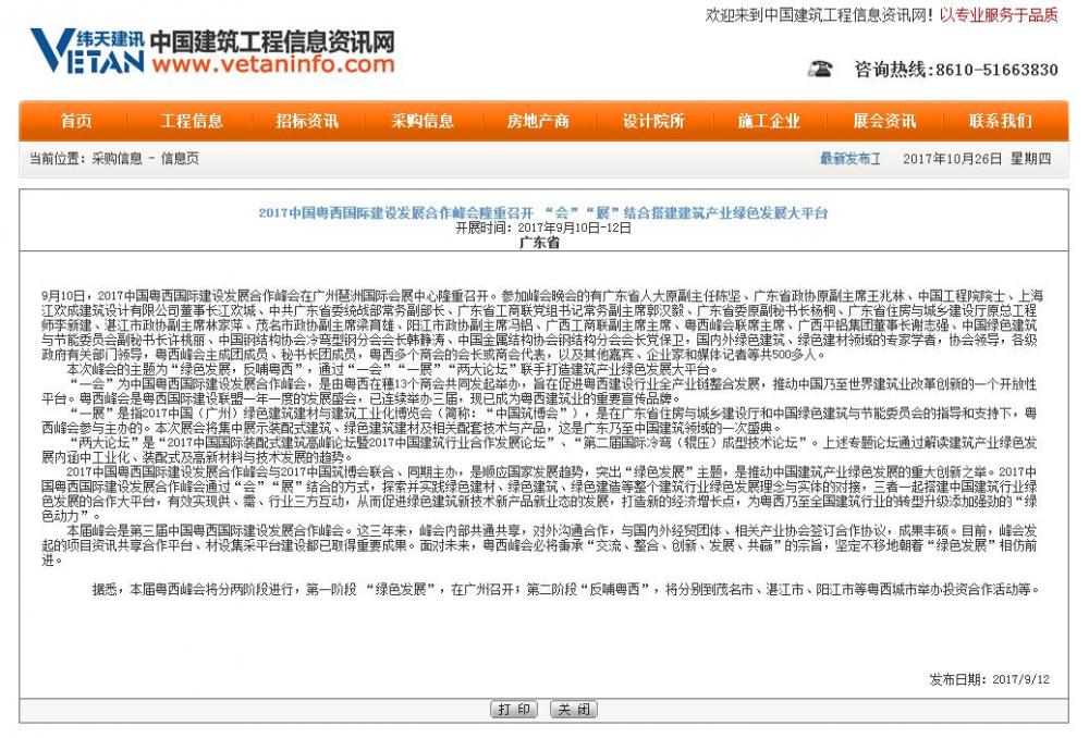 招商寶網(wǎng)發(fā)布有關(guān)2017中國(guó)粵西國(guó)際建設(shè)發(fā)展合作峰會(huì)的報(bào)道 (2017-10-31)