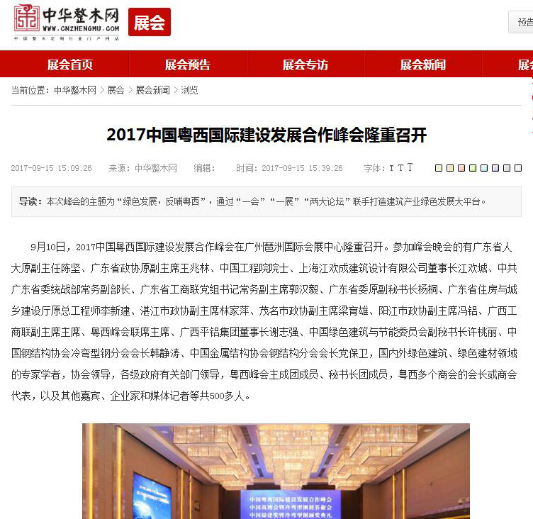 木材圈網發布有關2017中國粵西國際建設發展合作峰會的報道 (2017-10-31)