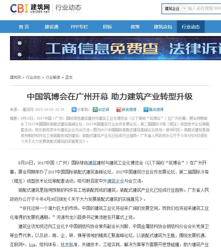 中華整木網發布有關2017中國粵西國際建設發展合作峰會的報道 (2017-10-31)