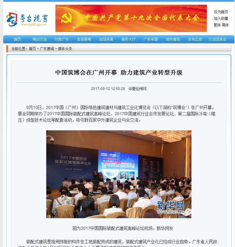 新華網(wǎng)·廣東頻道發(fā)布有關(guān)2017中國筑博會·廣州的報道 (2017-11-01)
