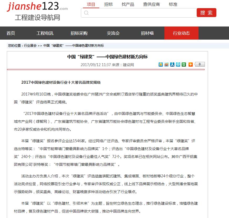 中國幕墻網發布有關2017中國筑博會·廣州的報道 (2017-11-01)