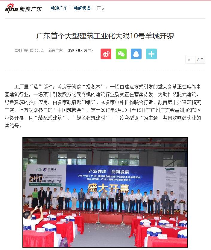 中國鋼結構資訊網發布有關2018中國(廣州)綠色建筑建材與建筑工業化博覽會的報道 (2018-01-25)