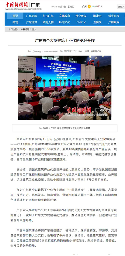 新浪廣東網(wǎng)發(fā)布有關(guān)2017中國筑博會·廣州的報道 (2017-11-01)